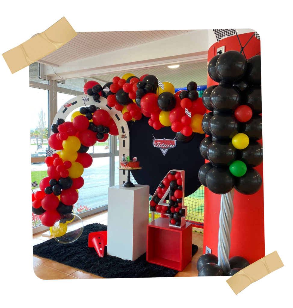 El cumpleaños temático completo por excelencia. Incluye todo lo necesario para una fiesta memorable con una decoración temática muy visual (globos y menaje) y máxima diversión con dos opciones de comida caliente.